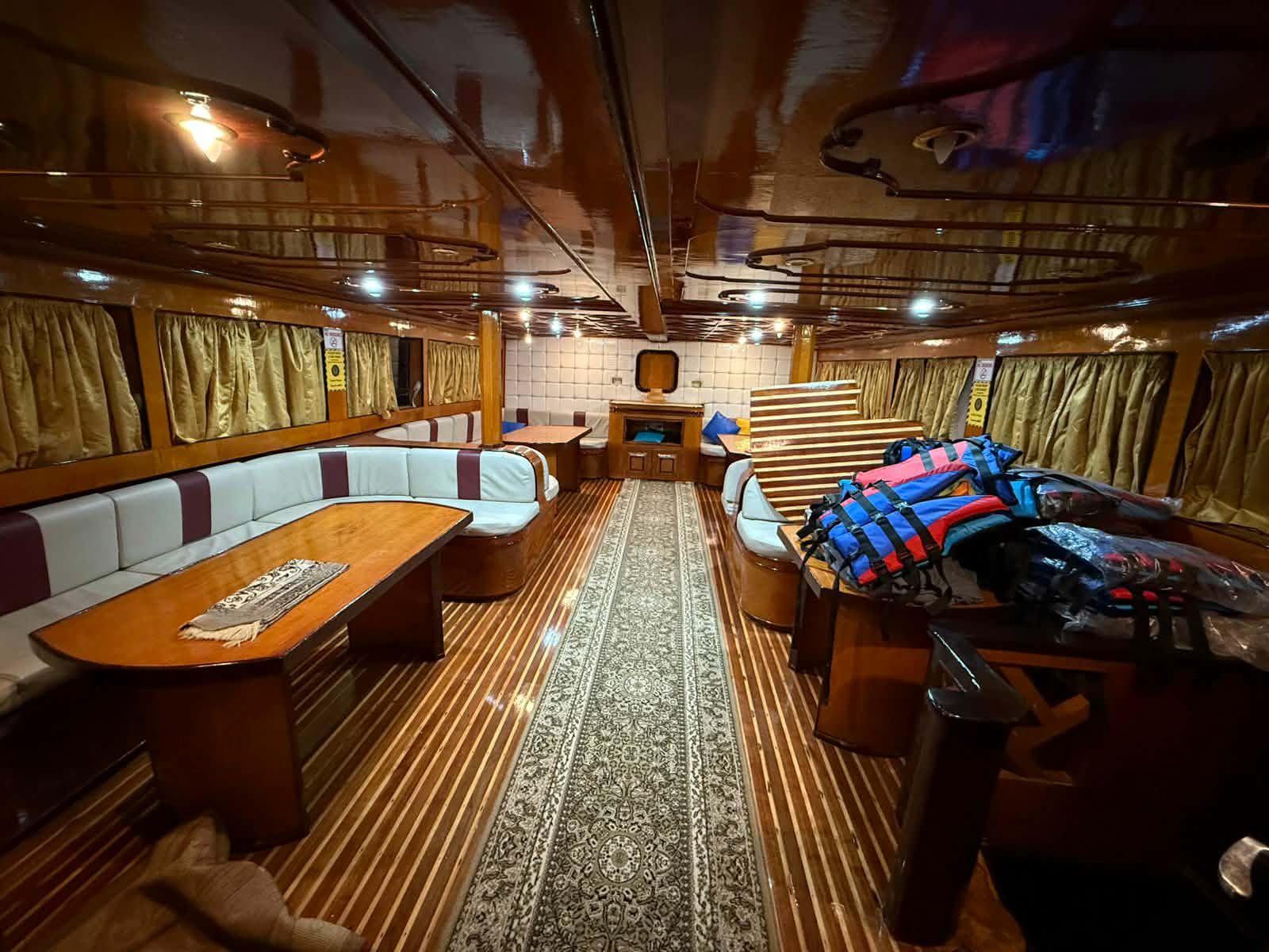 На яхте есть туалет и душ с пресной водой.